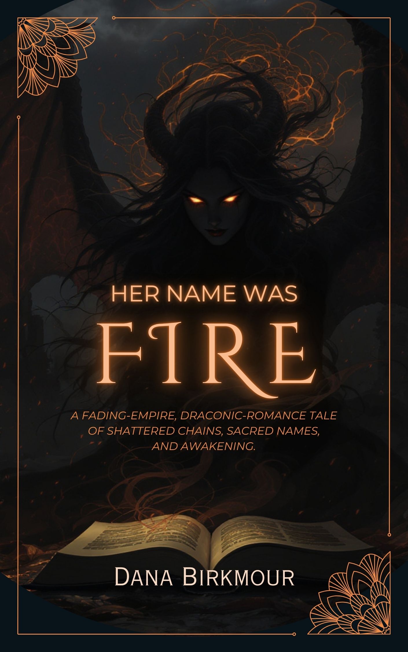 A fading-empire, draconic-romance novella of shattered chains, sacred names, and awakening.